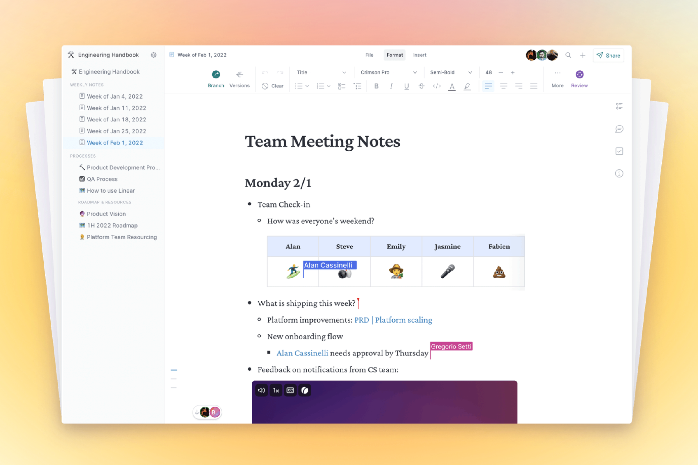 As a company, their passion for building tools to power an async future is evident in the features they've baked into their app – things like bi-directional links for building an interconnected knowledge base and robust version control that allows the team to make suggestions and changes before merging them into the main document.