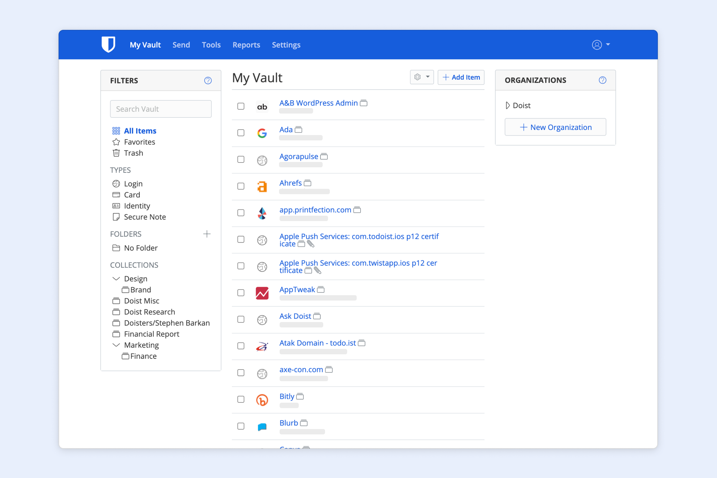 With Bitwarden, the whole team can find usernames and passwords in one place and the built-in authenticator code generator makes 2FA a breeze even for shared logins. Admins can control access to password collections so people only have access to the logins they need. You can rest assured that your accounts are as secure as possible without slowing down your team's work.