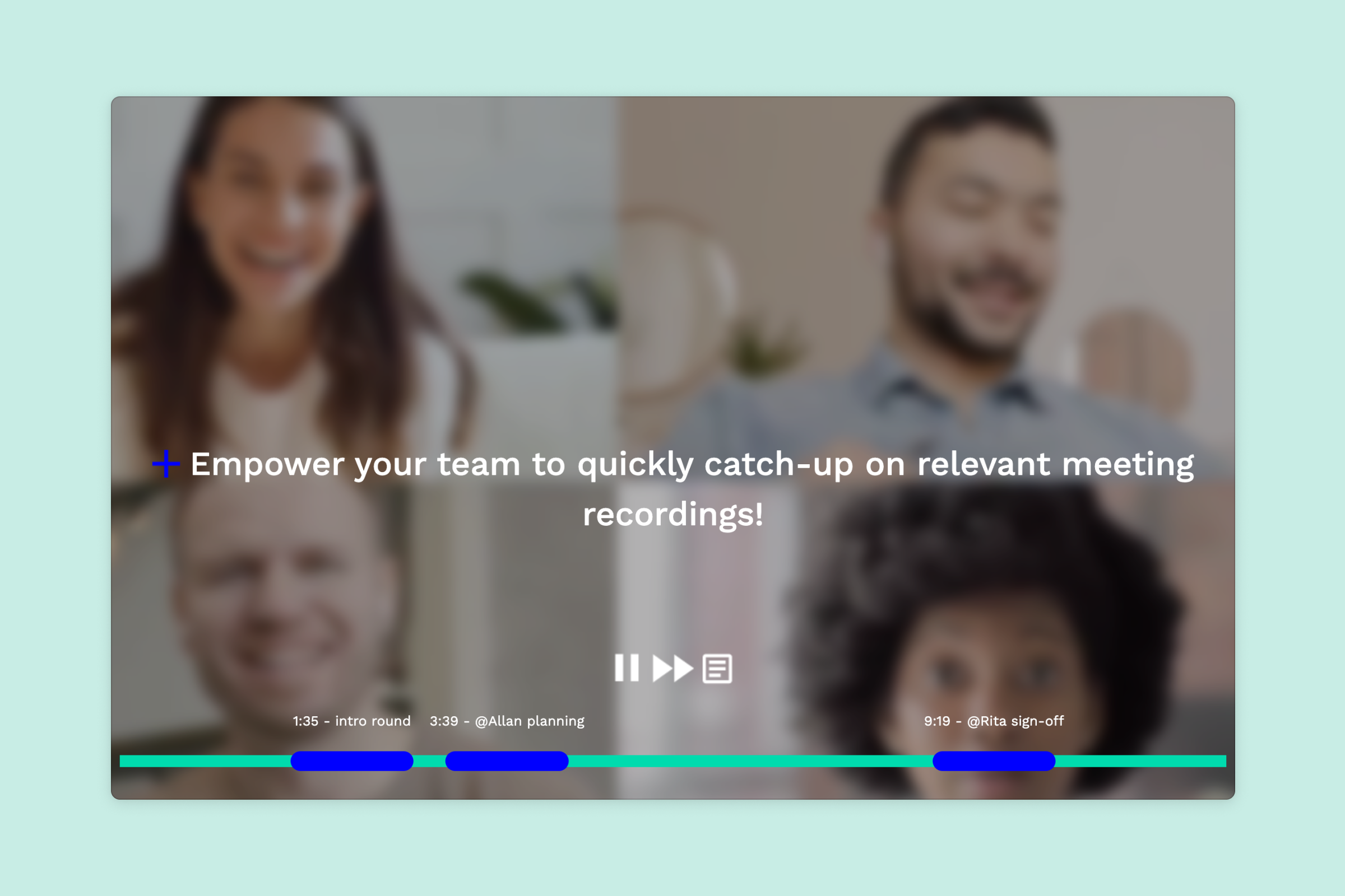 Sharing meeting recordings for people who couldn't attend is now a common async practice. The problem is, people rarely go back to watch a meeting recording. When they do, they have to wade through a lot of irrelevant information to get to the stuff that's relevant to them. That's where TL;DV comes in.
