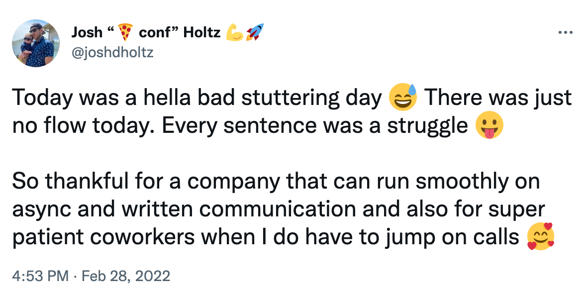 We spoke to several people who told us how a remote, async-first work environment — free from daily commuting, back-to-back meetings, presenteeism, and “always-on” communication — has made it possible for them to manage health conditions, to be more present as a parent, or simply to produce better work, in ways a traditional work schedule did not.