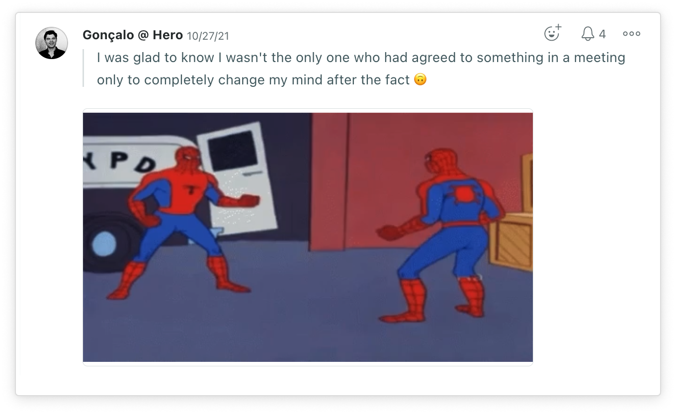 Unlike real-time collaboration, async work gives you the time to move past your first knee-jerk reaction, consider other perspectives, and formulate your thoughts constructively. Often you figure out what it is you actually think as you’re writing it out. It’s not uncommon for me to start a response to a thread thinking one thing and end up concluding something else entirely before I’m through. Writing clarifies thinking in a way that meetings do not.